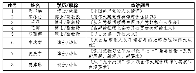 附:宣讲团成员及宣讲题目